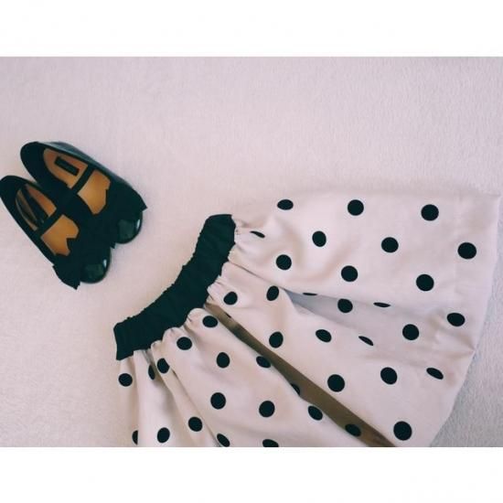 シャンタン生地を使用したアイボリー×ブラックドットの親子リンクスカートです♡
