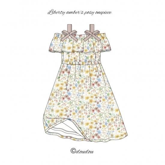 夏らしい色柄のリバティ生地エドナを使用して今年の夏休みのご旅行やお出かけにもぴったりなママワンピース&ガールワンピース。